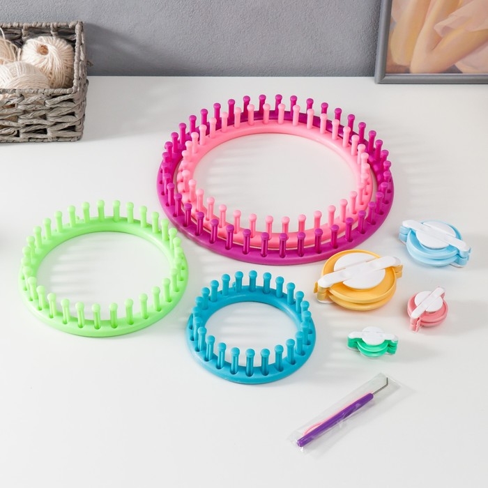 Набор устройств для вязания 4 шт d=13, 18, 23 и 28 см+4 инструмента д/изготовления помпонов
