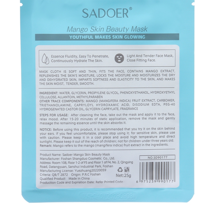 - Тканевая маска для лица с экстрактом манго, увлажняющая - 2 шт