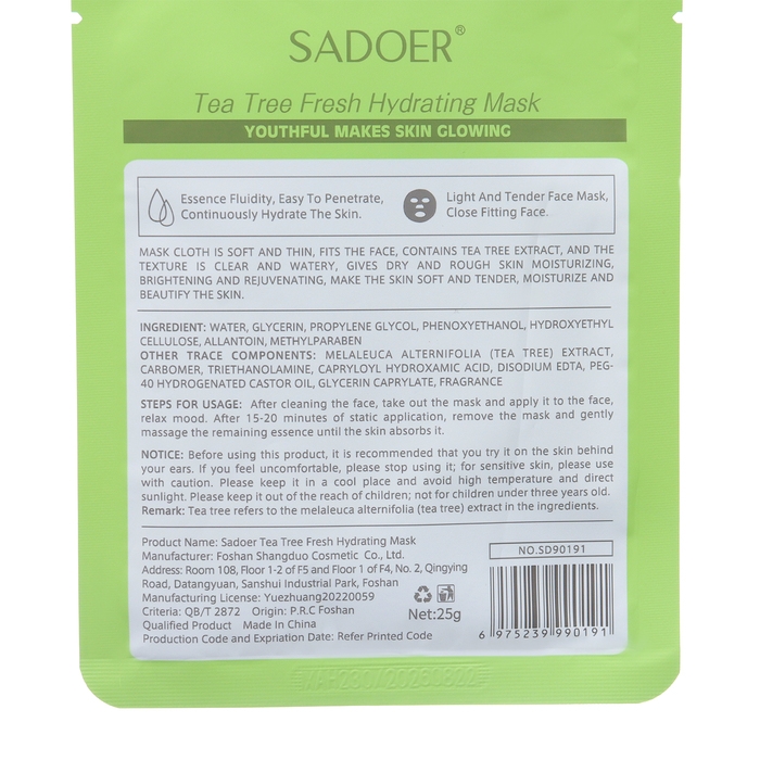 - Тканевая маска для лица с экстрактом зеленого чая, увлажняющая - 2 шт