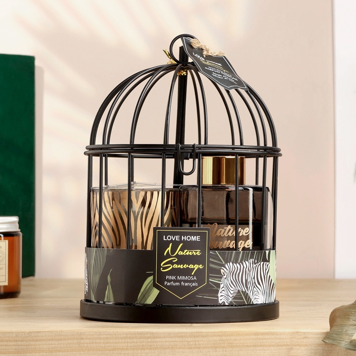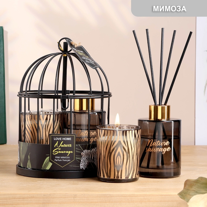Набор в клетке "Love home" диффузор 100 мл и свеча 6х7 см, мимоза