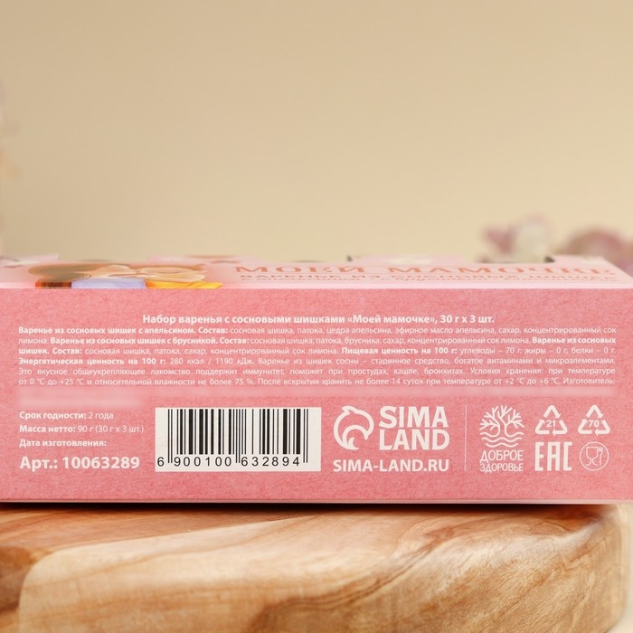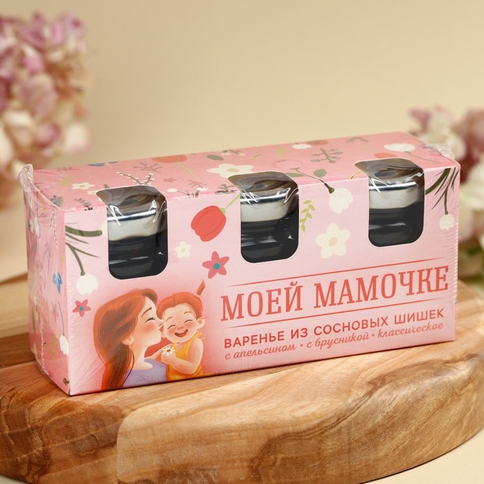 Набор варенья с сосновыми шишками «Моей мамочке», вкус: апельсин, брусника, 90 г (30 г х 3 шт.).