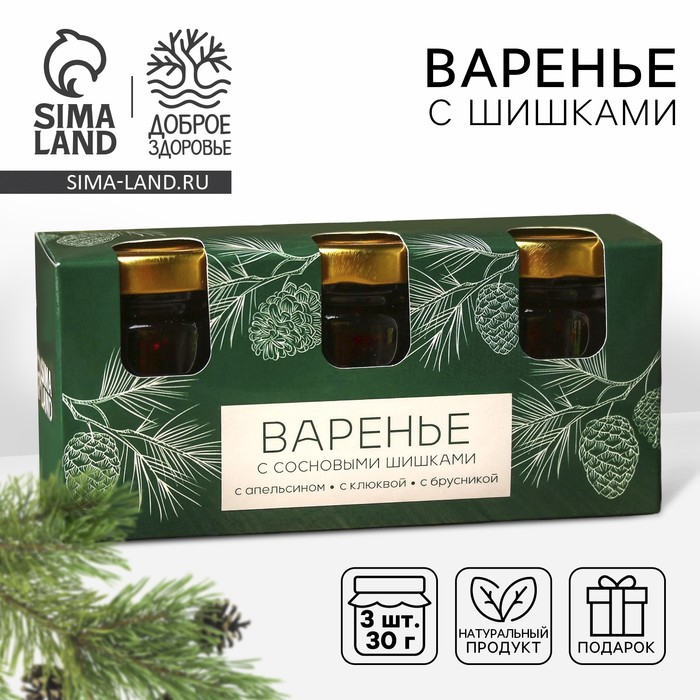 Набор варенья с сосновыми шишками «Здорового нового года», 30 г. x 3 шт.