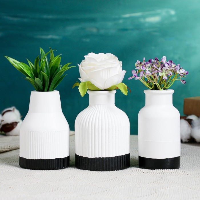 Набор ваз "Кувшинчики" 3шт, бело-черные, 10см