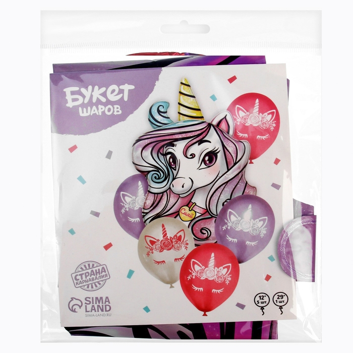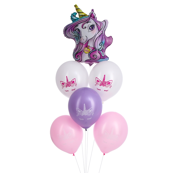 Набор воздушных шаров «Единорог», фольга, латекс, 6 шт.