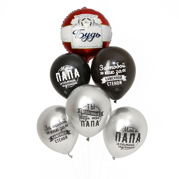 Набор воздушных шаров «Папе», латекс, фольга, 6 шт.