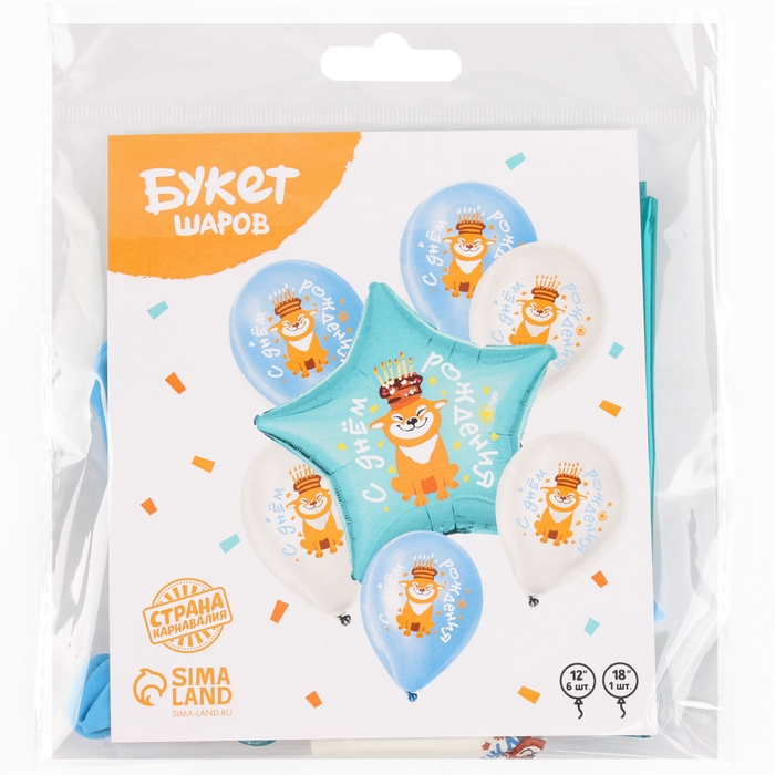 Набор воздушных шаров «Праздничный пёсик», латекс, фольга, 7 шт., МИКС