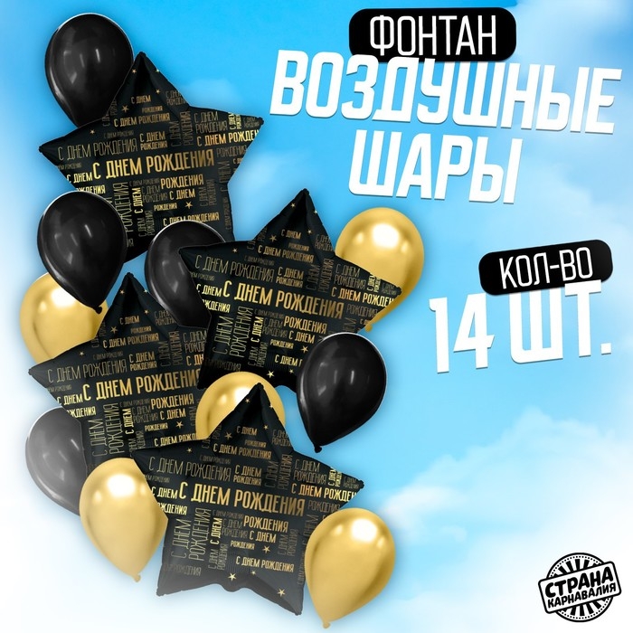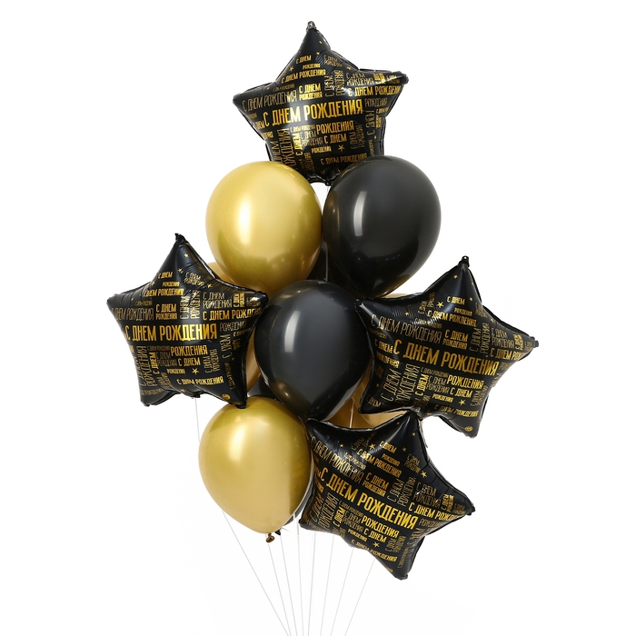 Набор воздушных шаров «С днём рождения», чёрно-золотой, универсальный, фольга, латекс, 14 шт.