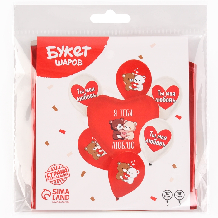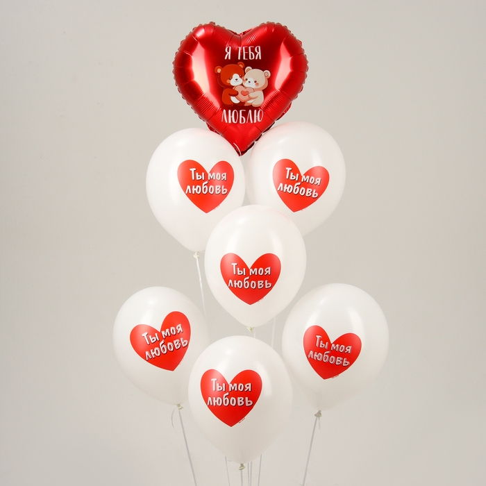 Набор воздушных шаров «Я тебя люблю. Мишки», латекс, фольга, 7 шт., МИКС