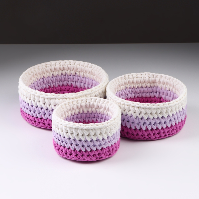 Набор вязанных корзин, 3 шт, трикотажная пряжа, розовый