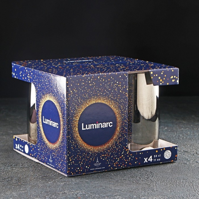 Высокие стаканы Luminarc, объём 330 мл. Стакан прозрачный, с радужно-золотистой тонировкой украсит любой праздничный стол.