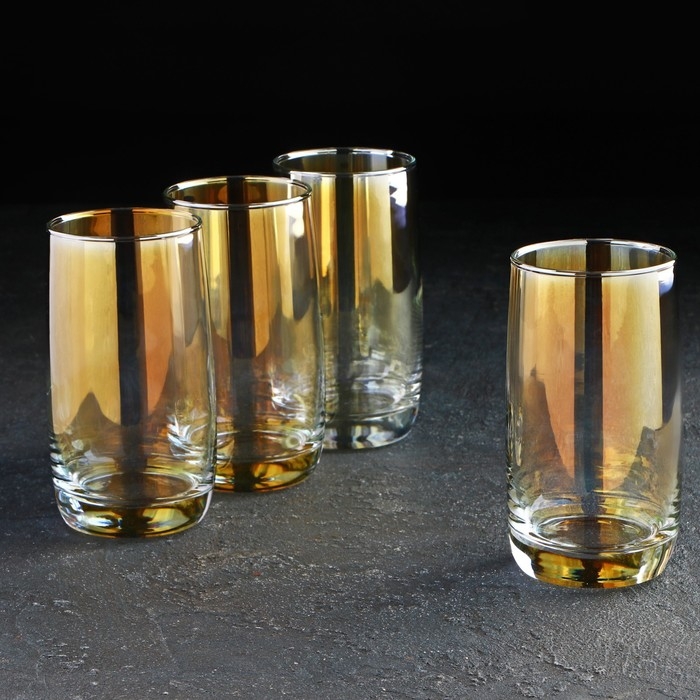 Набор высоких стеклянных стаканов «Золотой мёд», 350 мл, 4 шт