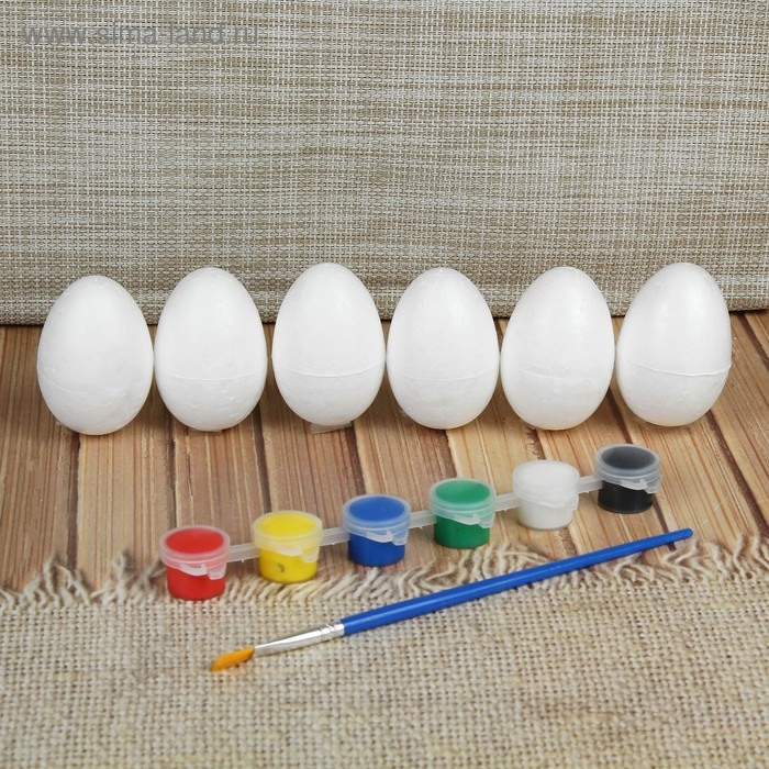 Набор яиц под раскраску 6 шт., размер 1 шт: 4 × 6 см, краски 6 шт. по 3 мл, кисть