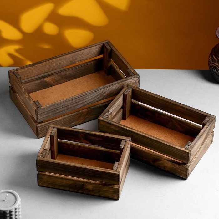 Набор ящиков деревянных "3 в 1" (30,5х18,5х10; 26х16х9,5; 21х13х9) см натуральный палисандр
