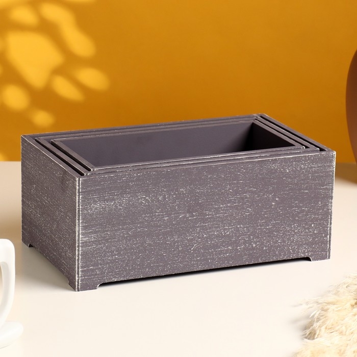 Набор ящиков деревянных "Прованс" 3 в 1 (25х14,5х10; 23х12,5х9; 21х10х8)см графит