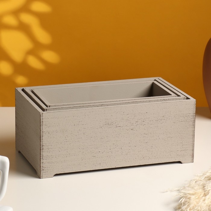 Набор ящиков деревянных "Прованс" 3 в 1 (25х14,5х10; 23х12,5х9; 21х10х8)см светло-серый