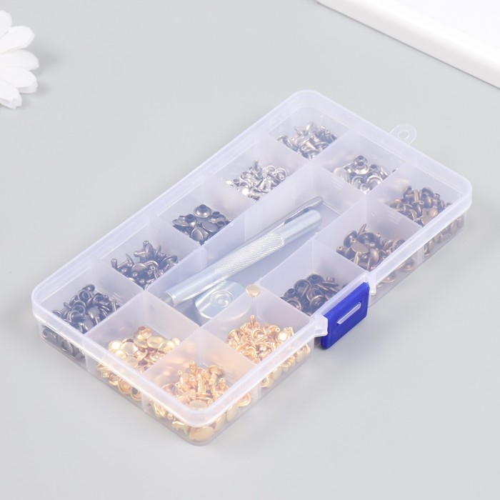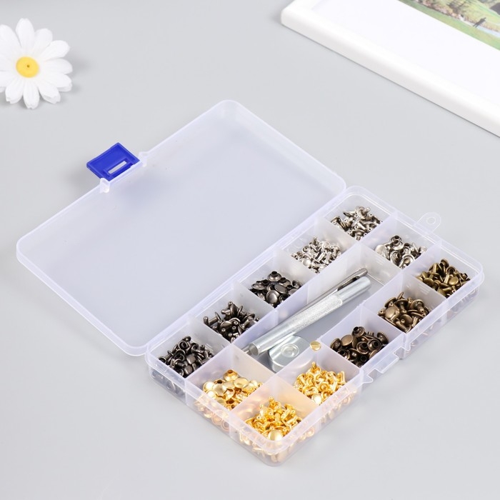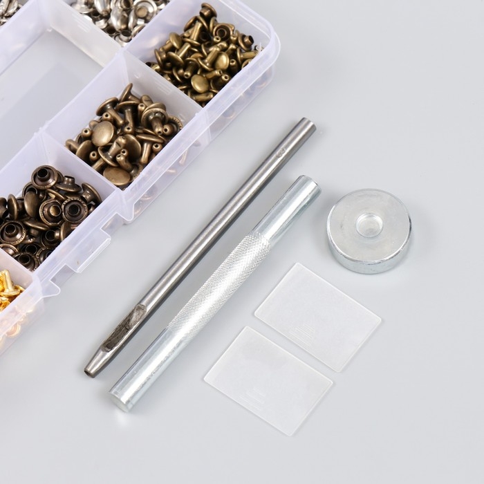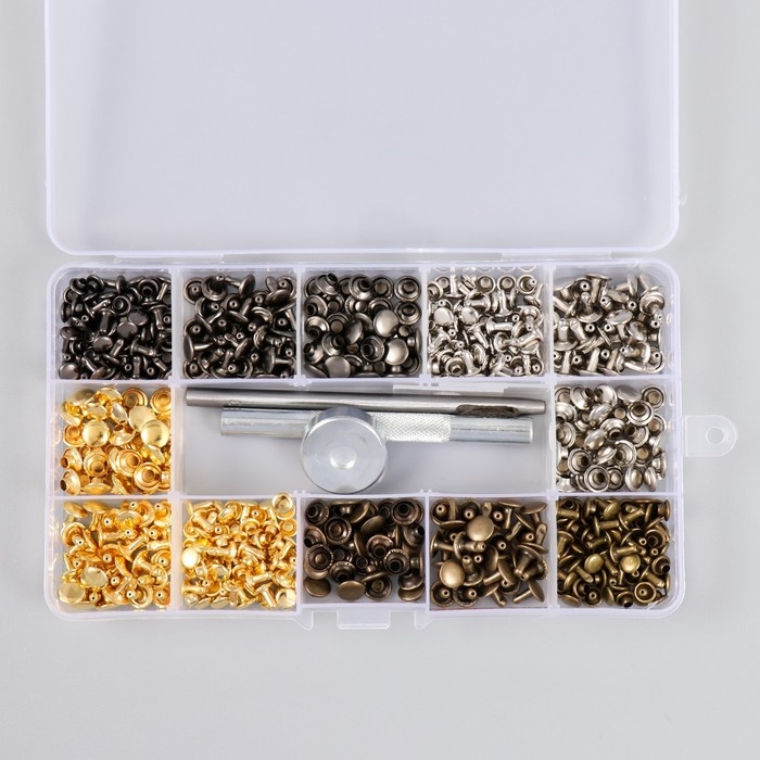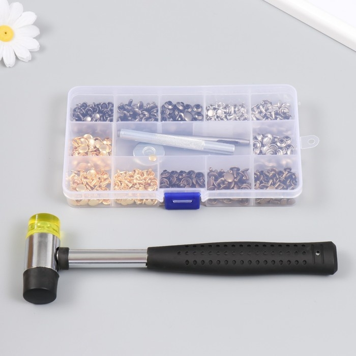 Набор заклёпок 244 шт 12 видов (8х8 мм; 6х6 мм) с молотком
