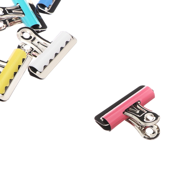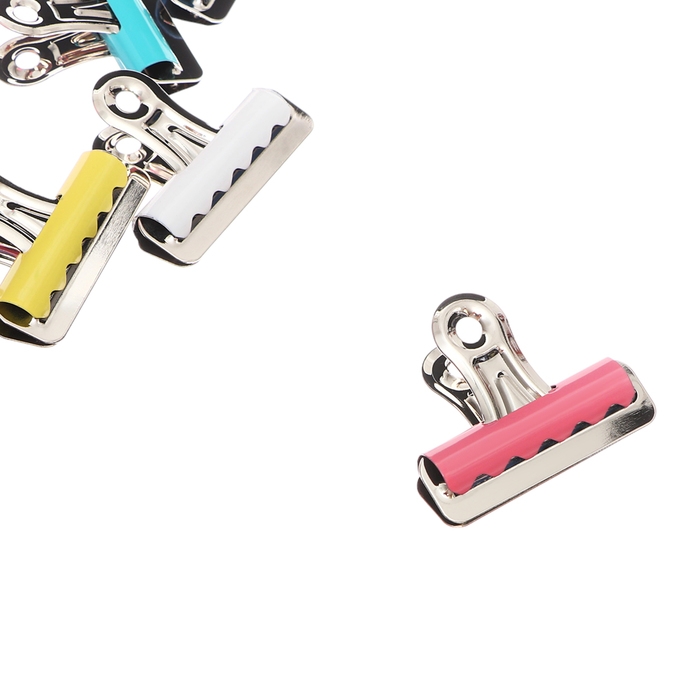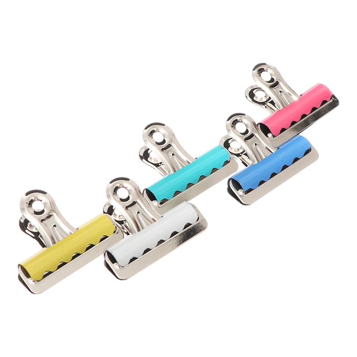 Зажимы выполнены в ярких цветах. Надежно скрепляют и не деформируют бумагу. Скрепляют до 90 листов, не оставляют на ней следов. Упакованы в картонную коробку по 10 шт. Цвета - ассорти.