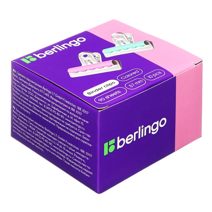 Набор зажимы-бульдоги для бумаг 57 мм, 10 штук Berlingo, цветные, картонная коробка