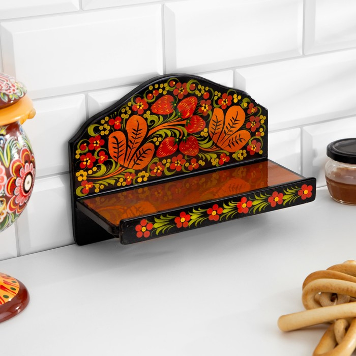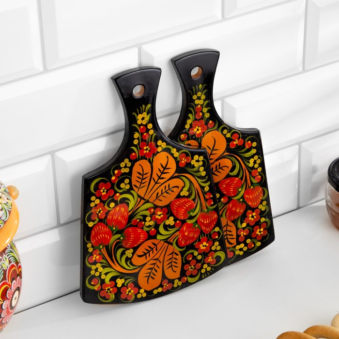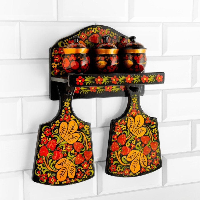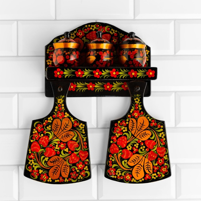 Набор «Земляничка», 6 предметов: 2 доски, 3 банки, подставка, хохлома