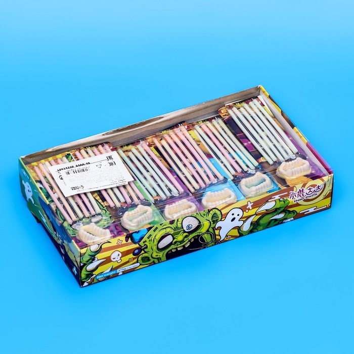 Набор жевательного мармелада "Монстры" с отдельной кислой пудрой – идеально подходит для любителей необычных сладостей. Мармелад в виде зубов вампира добавляет веселья и немного мистики.