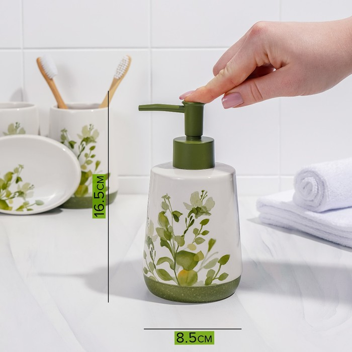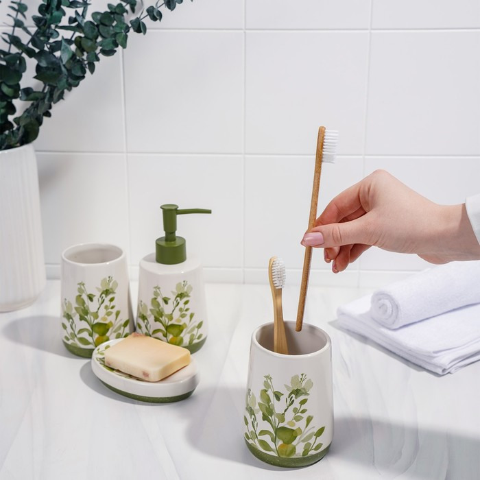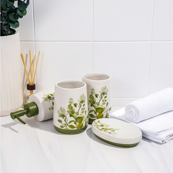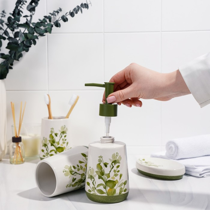 Набор аксессуаров для ванной комнаты «Листва», 2 предмета (дозатор для мыла, стакан), цвет зелёный