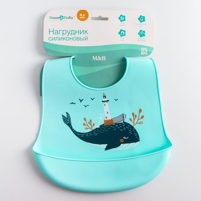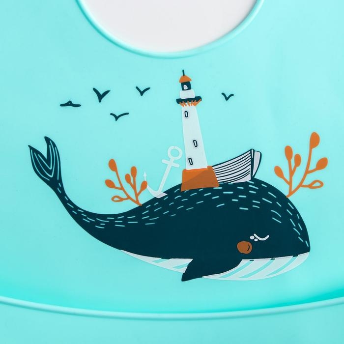 Нагрудник для кормления «Кит» силиконовый с карманом, цвет голубой