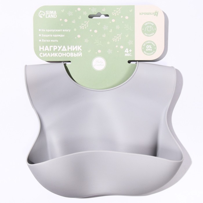 Товар изготовлен из силикона, не содержащего токсичных веществ. После использования мойте тёплой мыльной водой. Нагрудник рекомендован для детей старше 4 месяцев.