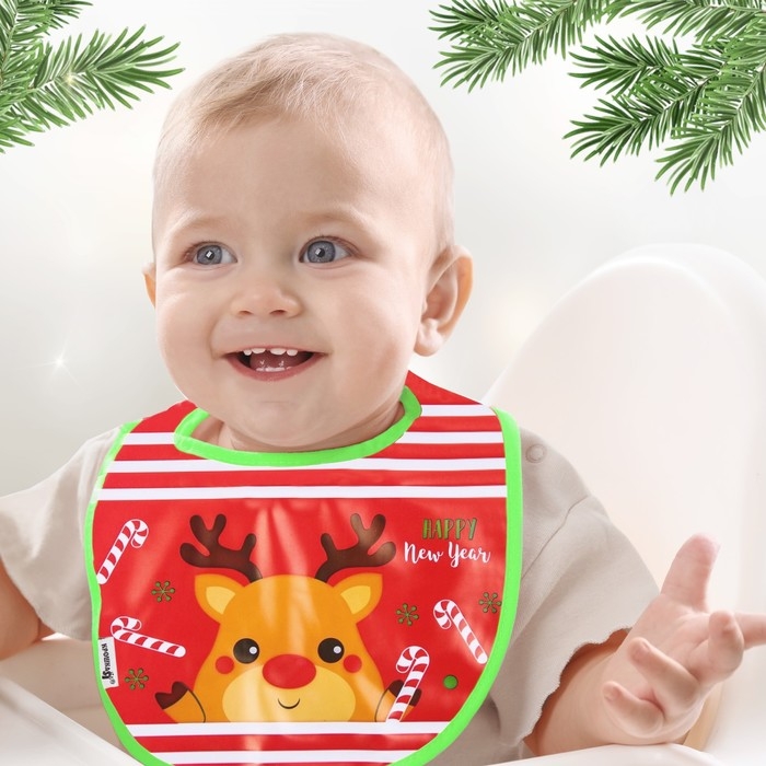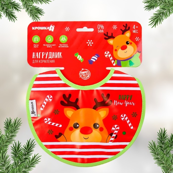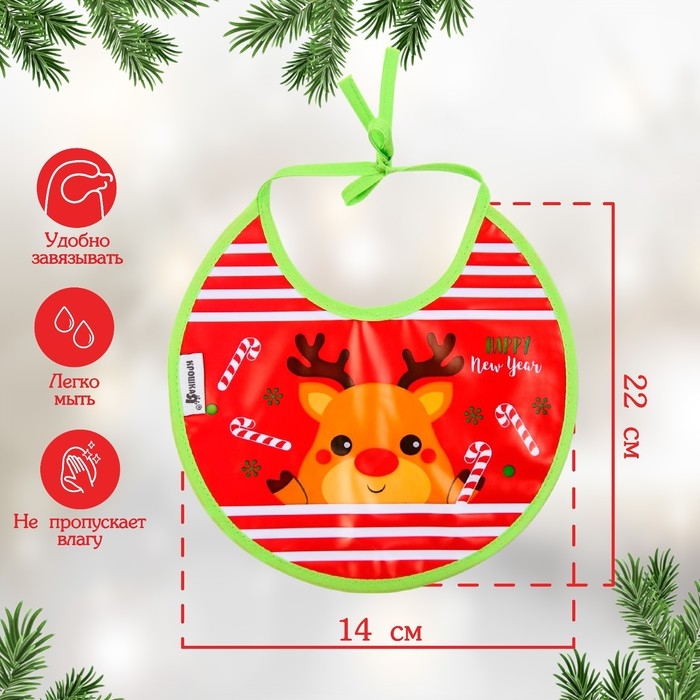 Нагрудник «Олененок» непромокаемый на завязках, ПВХ, новогодняя подарочная упаковка, Крошка Я