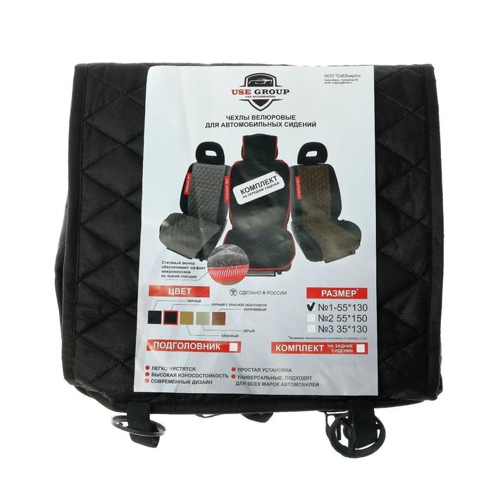 Накидка на переднее сиденье, велюр, размер 55 х 130 см, серый, широкое сиденье