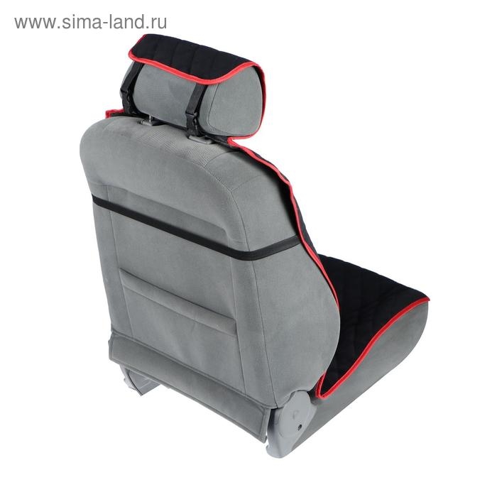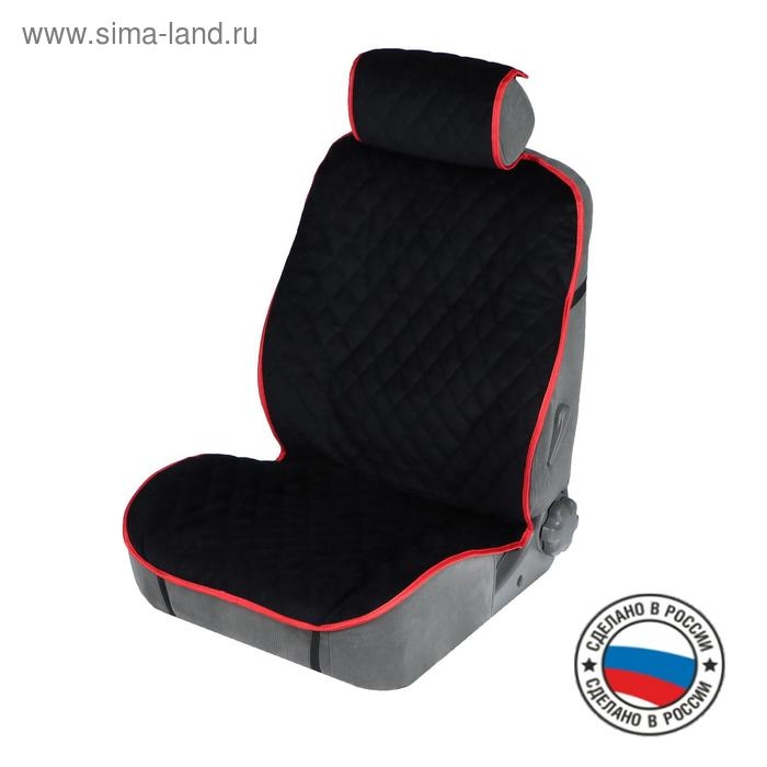Накидка на переднее сиденье, велюр, размер 55 х 150 см, черный с красным кантом