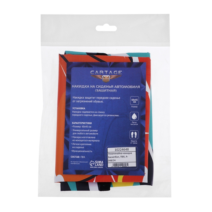 Накидка на сиденье автомобильное Cartage Баскетбол, ПВХ, 60 х 45 см, европодвес
