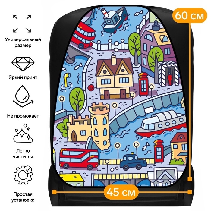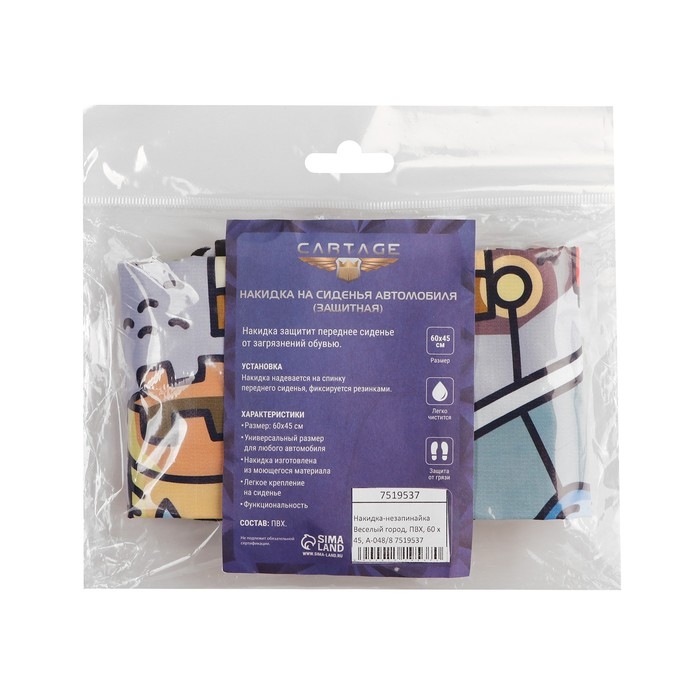 Накидка на сиденье автомобильное Cartage Веселый город, ПВХ, 60х45 см, европодвес