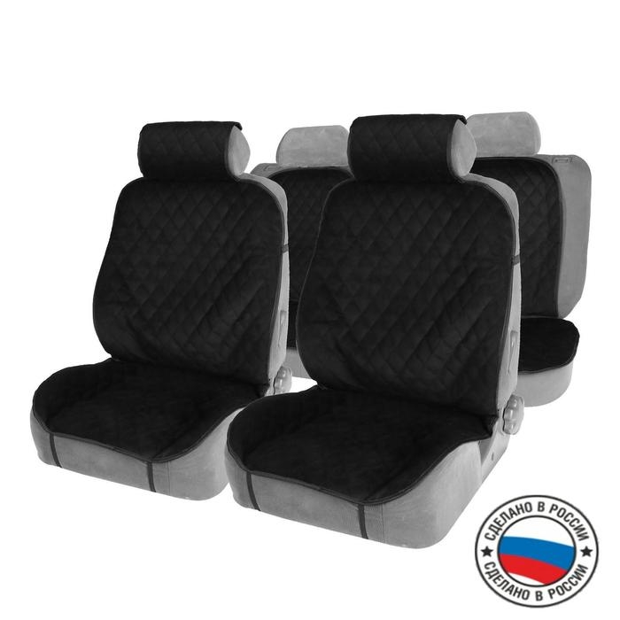 Накидки на сиденья, перед+зад, велюр, черный, набор 5 шт