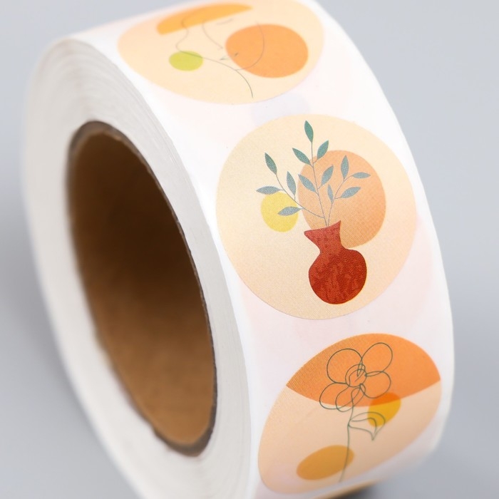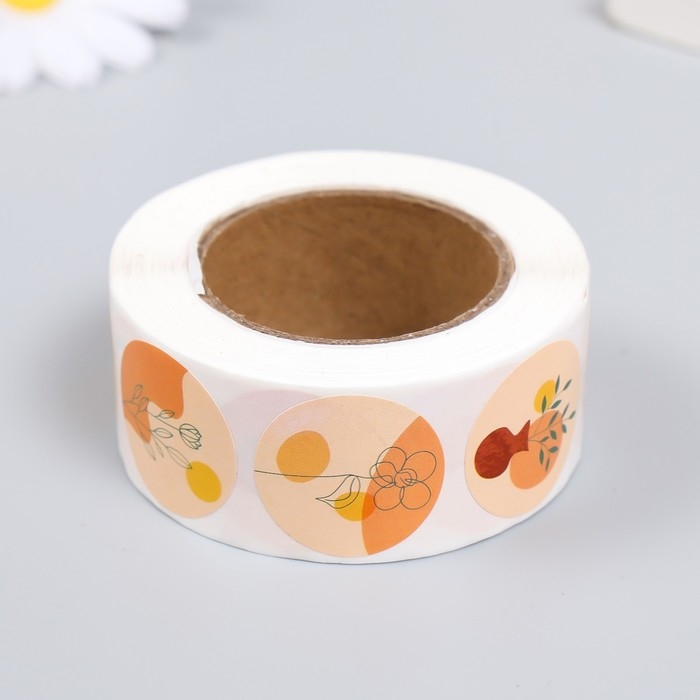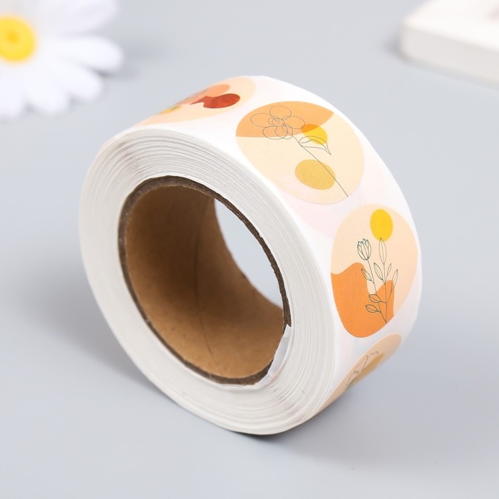 Наклейка бумага "Абстракция. Цветы" d=2,5 см 500 шт в рулоне 3х6,5х6,5 см