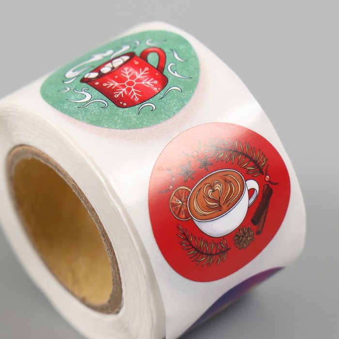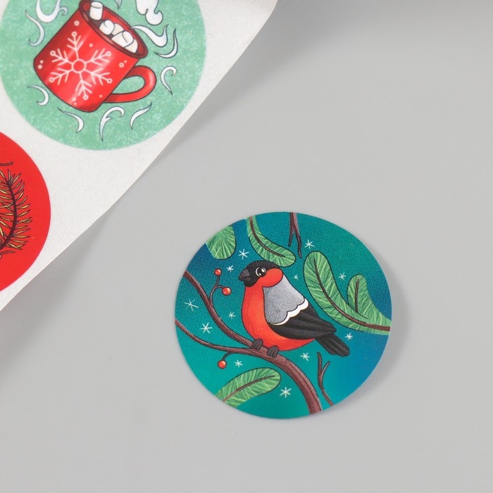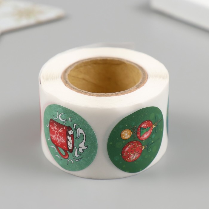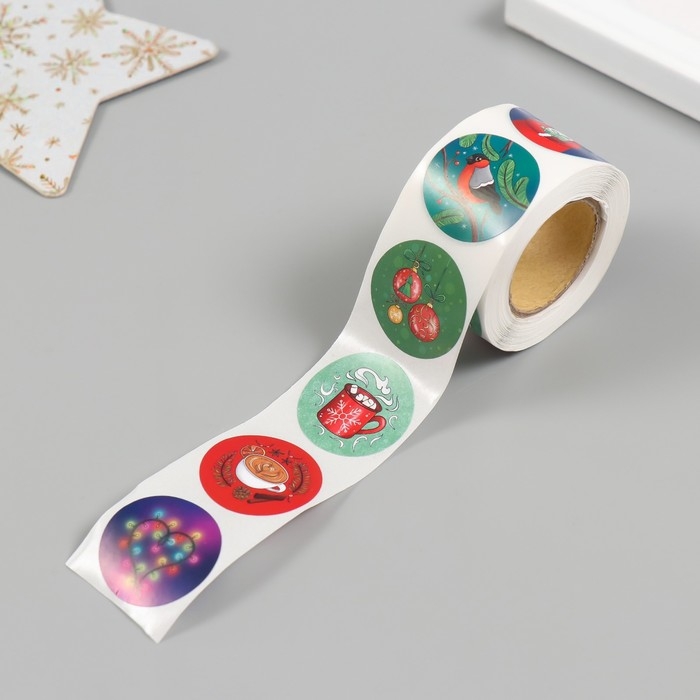 Наклейка бумага "Дед Мороз" d=2,5 см 252 шт в рулоне