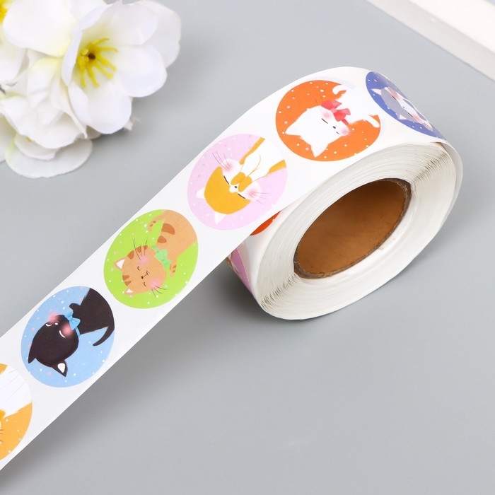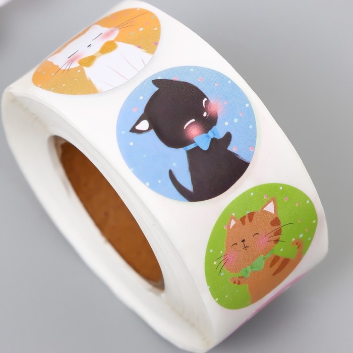 Наклейка бумага "Кошечки" d=2,5 см 500 шт в рулоне 3х6х6 см