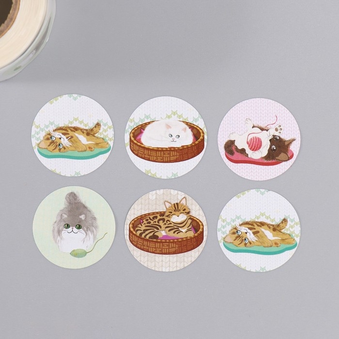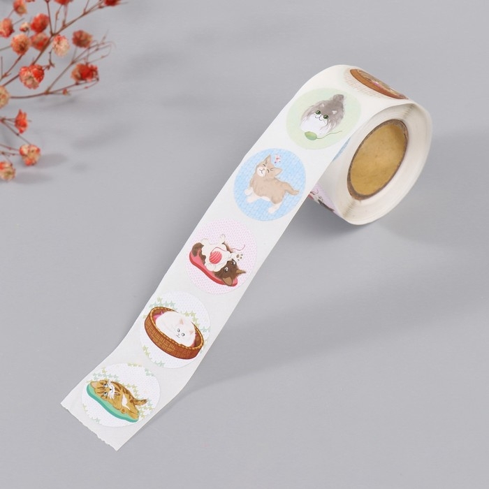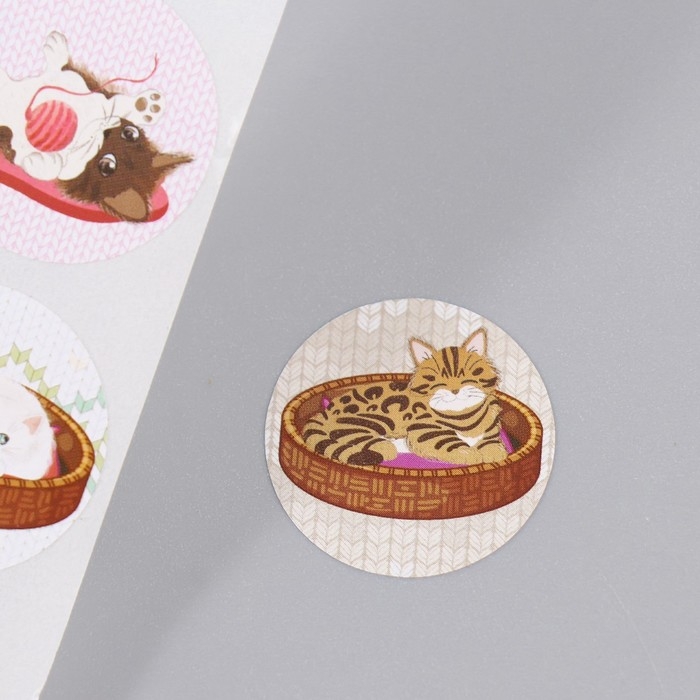 Наклейка бумага "Котята" d=2,5 см 252 шт в рулоне