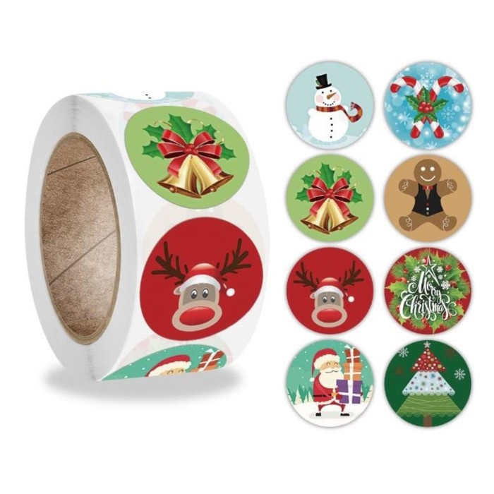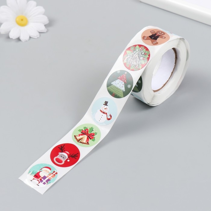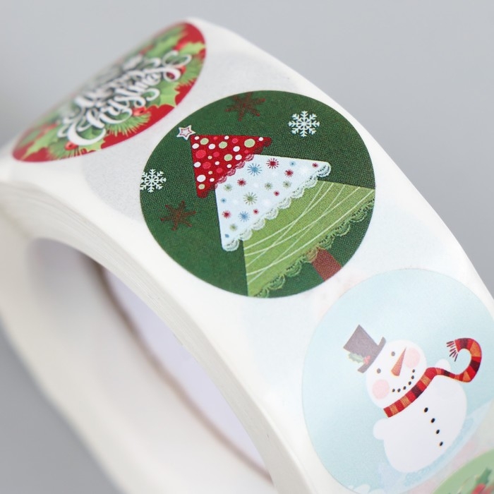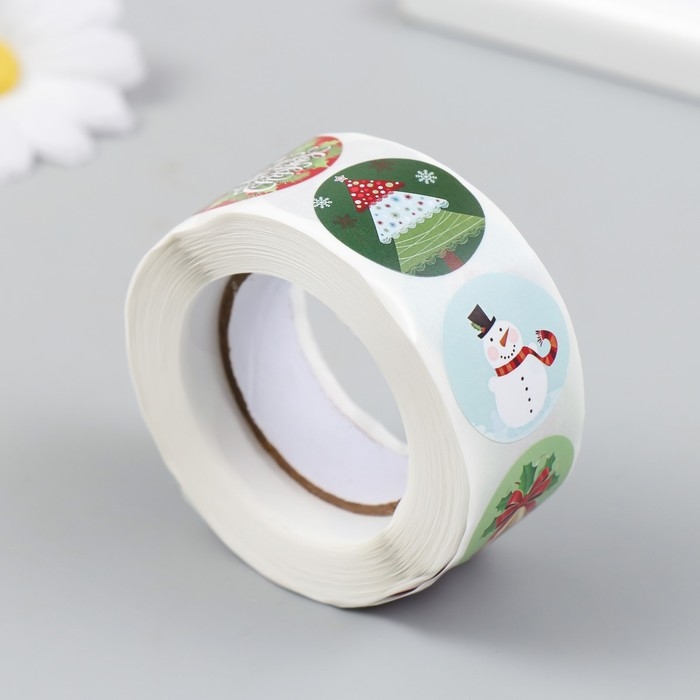 Наклейка бумага "Скоро Новый Год" d=2,5 см 500 шт в рулоне 3х6,5х6,5 см