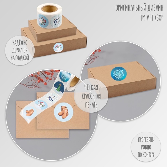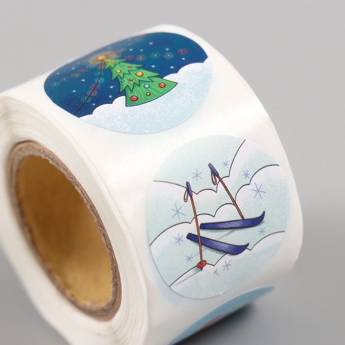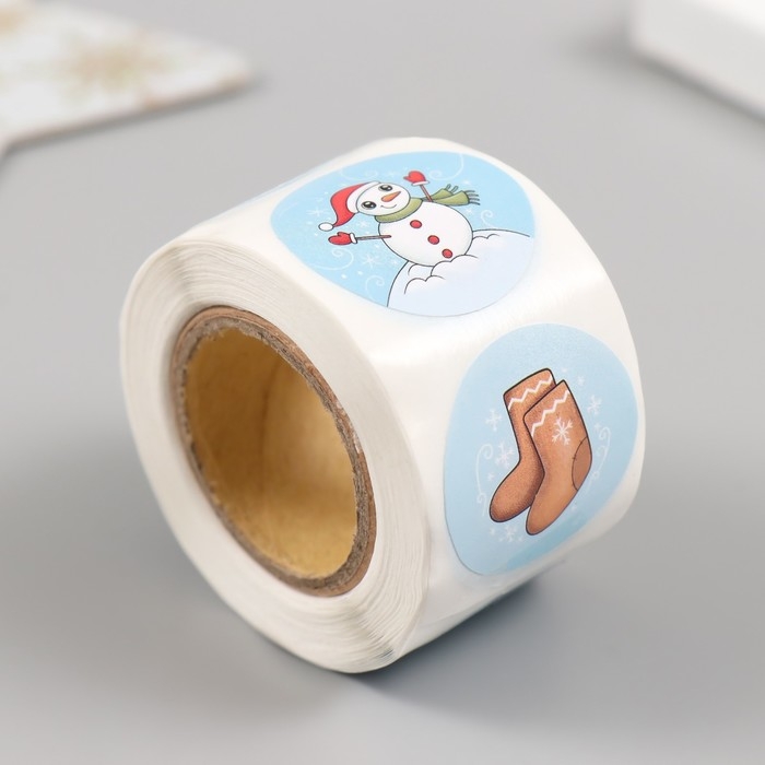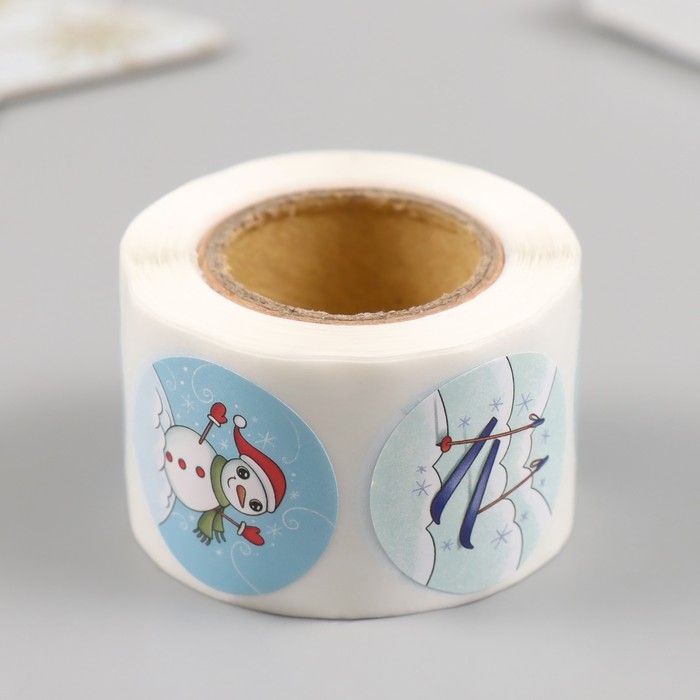 Наклейка бумага "Снеговик" d=2,5 см 252 шт в рулоне