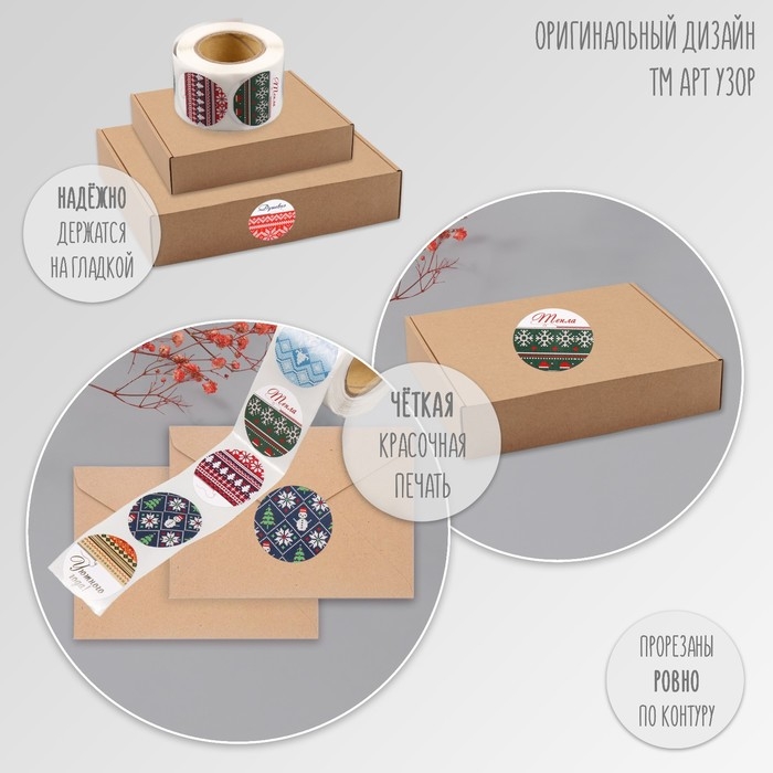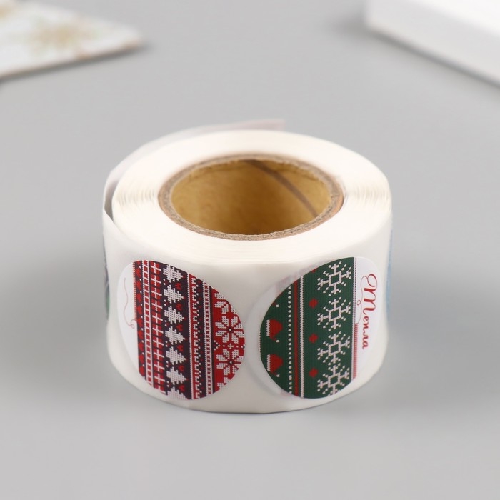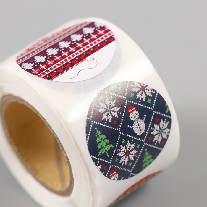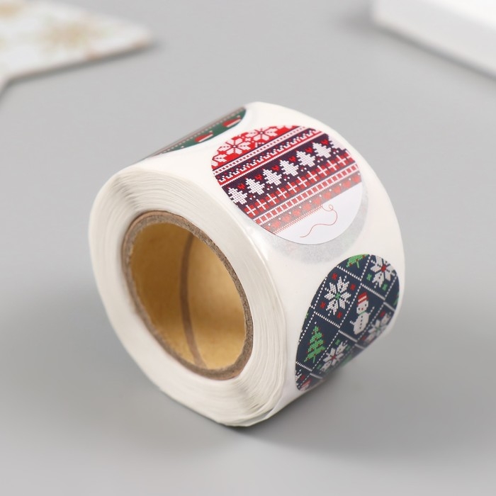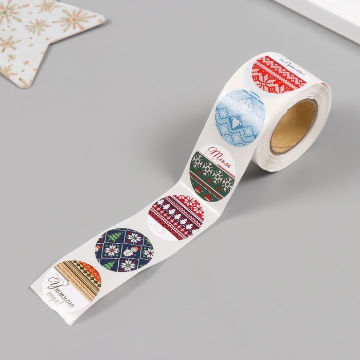 Наклейка бумага "Вязаная зима" d=2,5 см 252 шт в рулоне