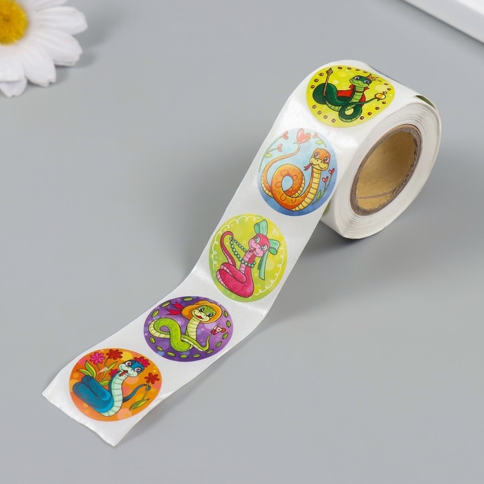Наклейка бумага "Змейки" d=2,5 см 252 шт в рулоне