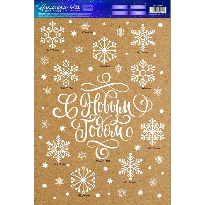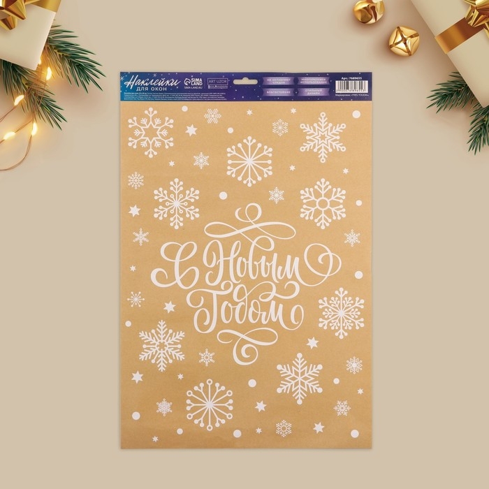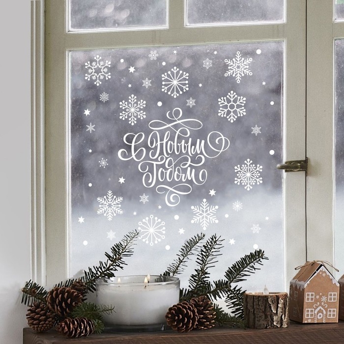 Наклейка для окон «Cнежиная история», многоразовая, 33 х 50 см, Новый год