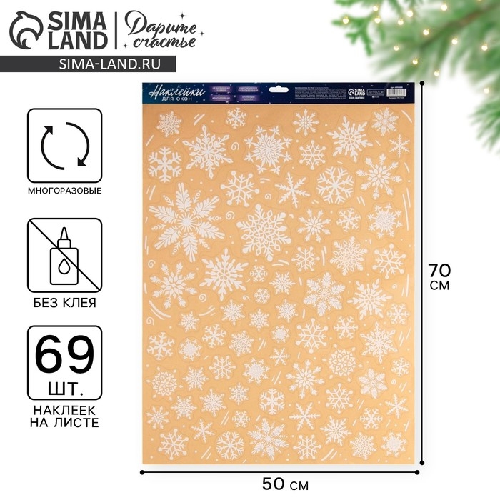 Наклейка для окон «Хоровод снежинок», многоразовая, 50 х 70 см, Новый год