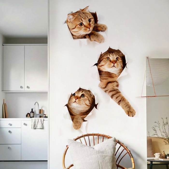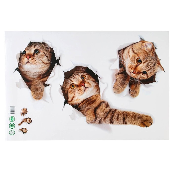 Наклейка интерьерная 3D "Три кошки" на стену, 60 х 40 см, влагостойкая, ПВХ