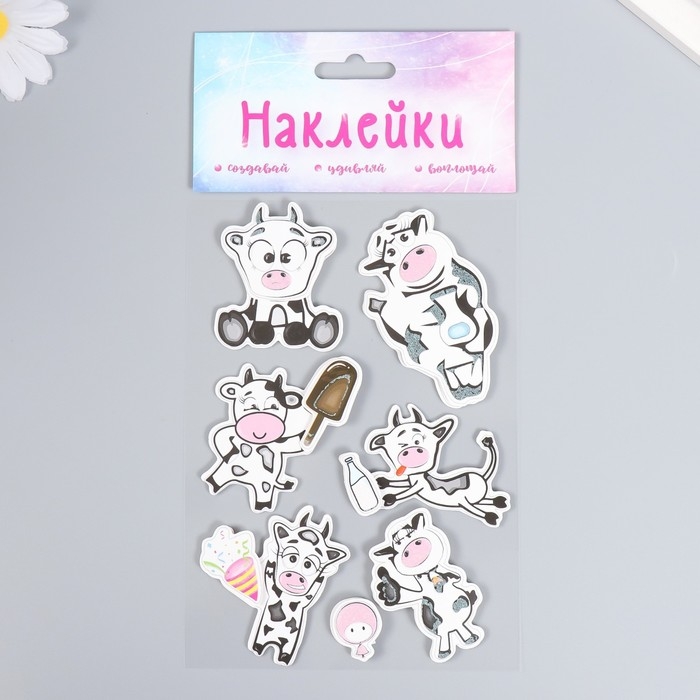 Наклейка картон 2 слоя "Смешные коровки" 17х12 см