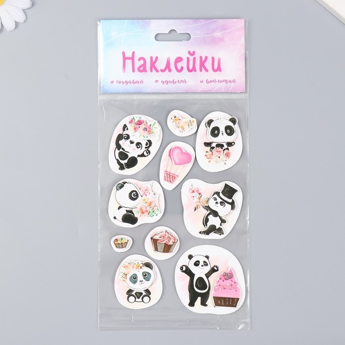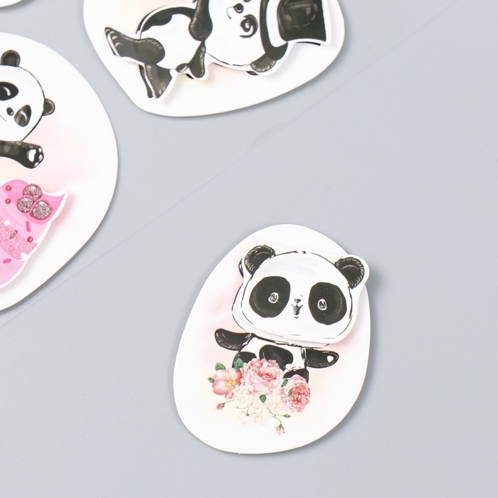 Наклейка картон 2 слоя "Цветочные панды" 17х12 см
