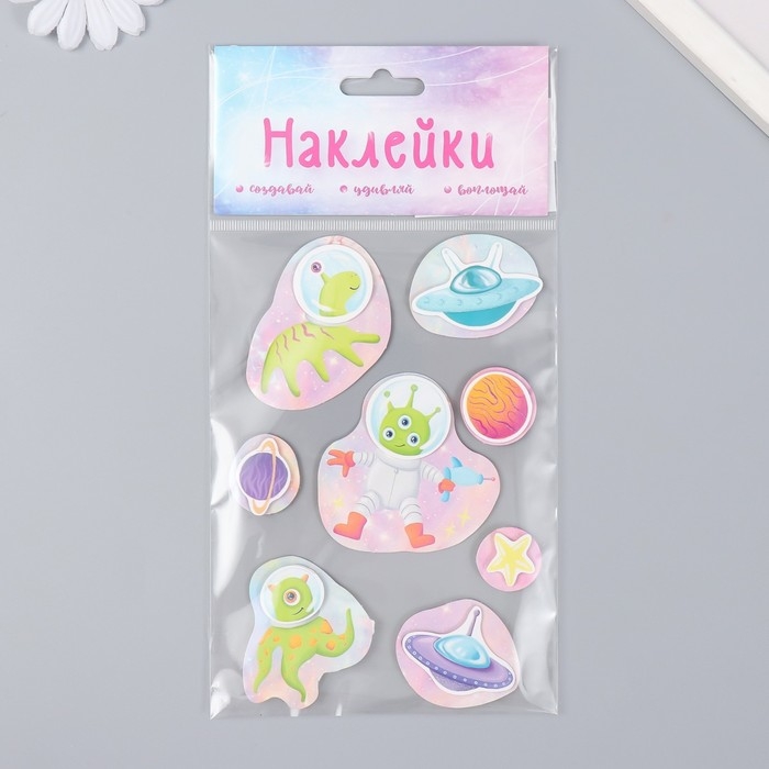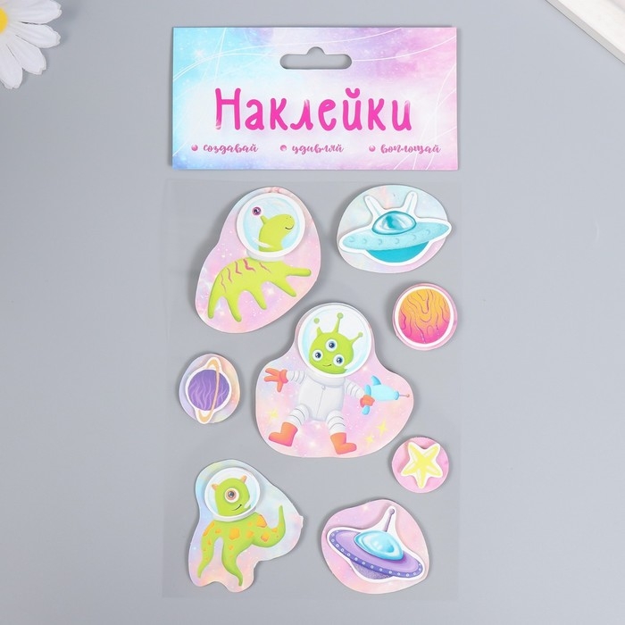 Наклейка картон 2 слоя "Добрые инопланетяне" 17х12 см