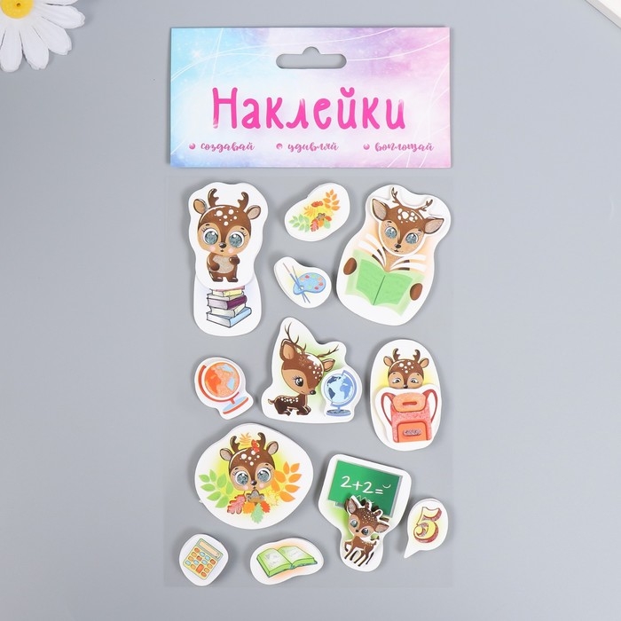 Наклейка картон 2 слоя "Оленята - Школа" 17х12 см