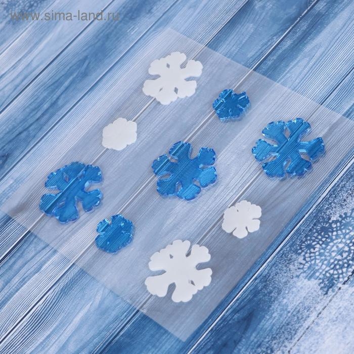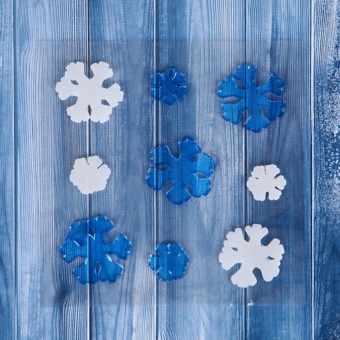 Наклейка на стекло "Белые и синие снежинки" (набор 9 шт) 12,5х12,5 см, сине-белый