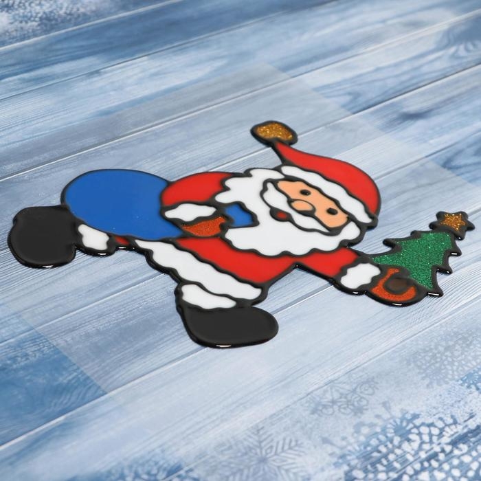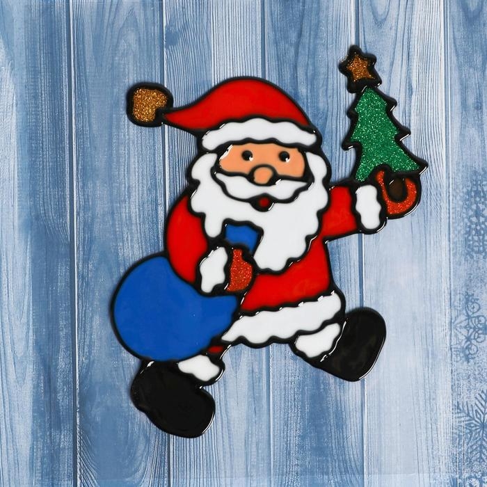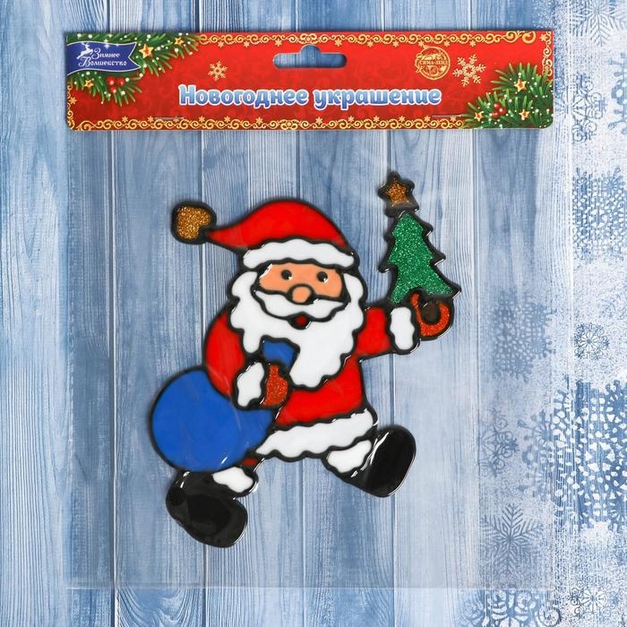 Наклейка на стекло "Дед Мороз с ёлкой и мешком" 11х14 см